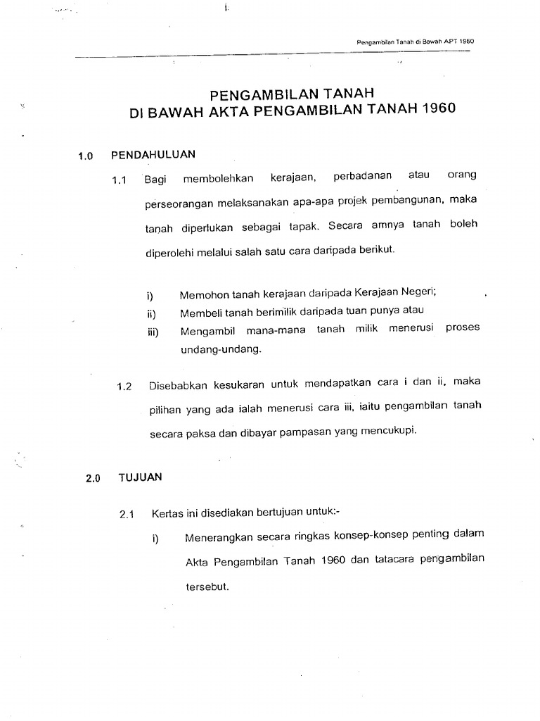 Kepentingan akta pengambilan tanah 1960 sebagai mekanisma pemangkin pembangunan negara. Pengambilan tanah oleh kerajaan untuk tujuan awam sebagaimana si bawah akta pengambilan tanah 1960 tidak boleh dihalang pemilik. Siasatan, perintah dan bayaran pampasan en. Pengambilan tanah 1960 (pindaan) memperuntukkan bahawa pihak berkuasa negeri. Pertama, anda bisa mengambil secara personal.