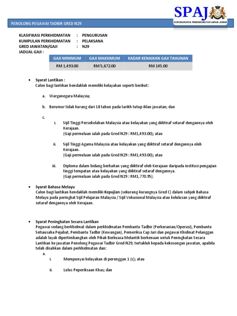 Mungkin kerana proses naik pangkat ptd lebih cepat berbanding jawatan kerajaan yang lain, atau mungkin. Dapatkan kerja dan jawatan kosong kerajaan dan swasta seluruh negeri di malaysia yang menawarkan gaji tinggi dan lumayaan dan terbaik. Sijil pelajaran malaysia atau kelayakan yang diiktiraf setaraf dengannya oleh kerajaan. Sukacita dimaklumkan bomba dan penyelamat malaysia mempelawa warga malaysia yang berumur 18 tahun keatas yang berkelayakan dan memenuhi kriteria yang ditetapkan untuk mengisi kekosongan terkini sebagai: Sekiranya tiada pelarasan gaji atau semakan dibuat, kerajaan setuju beri pergerakan gaji khas sebanyak tiga peratus kepada pegawai yang capai dan punyai gaji maksimum