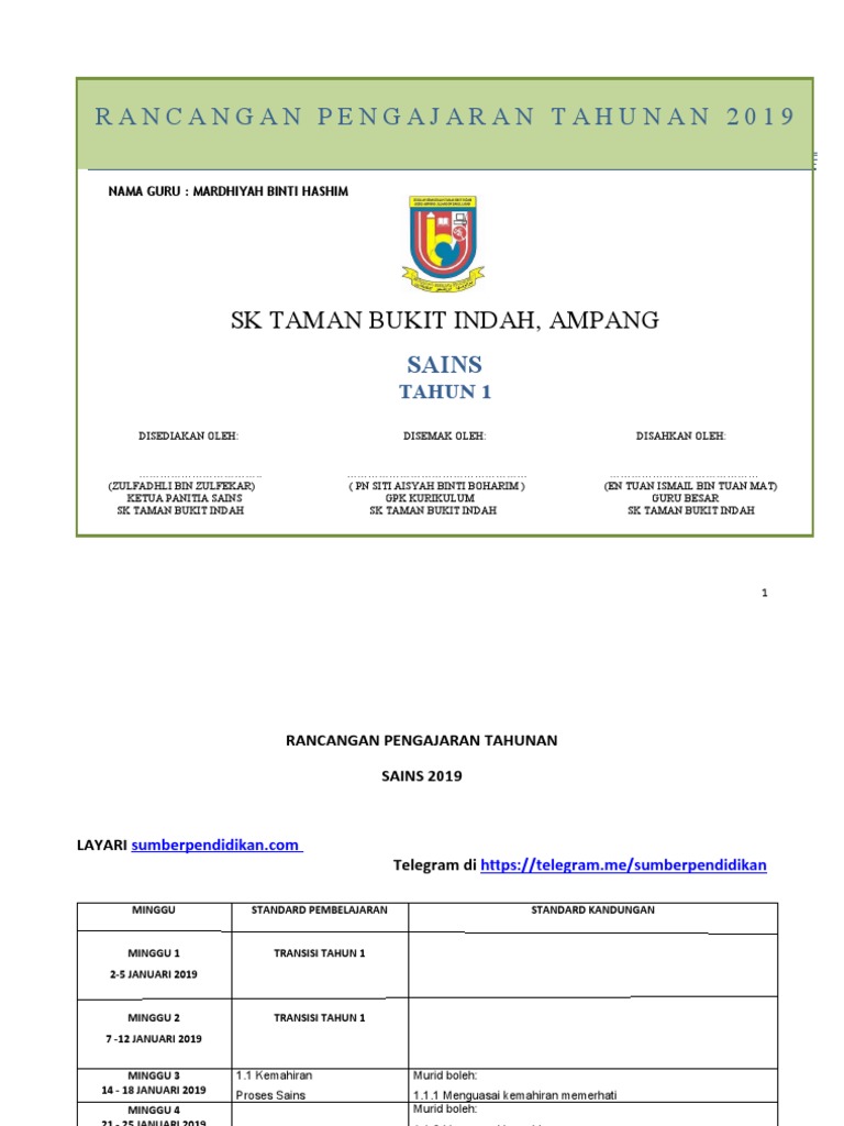 Rpt Sains Tahun 1 2019 / Download kumpulan rpp 1 lembar sesuai permendikbud no 14 tahun 2019.